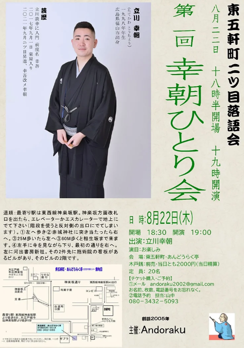 | Lieu | 東五軒町・あんどうらく亭(〒162-0813 東京都新宿区東五軒町2−11 コーポ佐藤 2階) |
