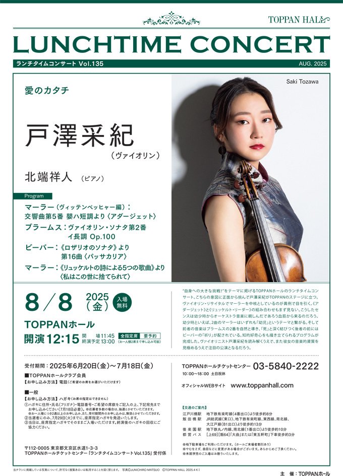 〈ランチタイムコンサート Vol.135〉戸澤采紀(ヴァイオリン)【受付終了】