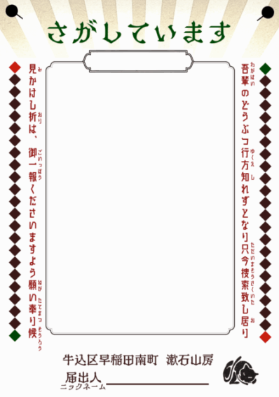 【漱石山房記念館】さがし犬・猫の手配書をつくろう