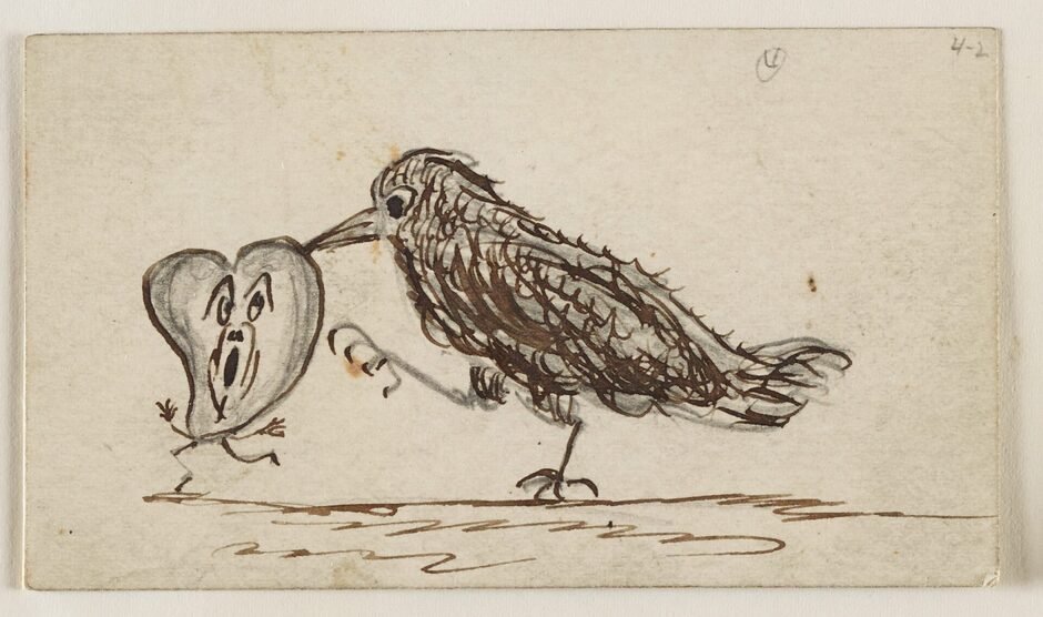 そのため、八雲はワトキン宛の書簡にだけ、署名代わりに大がらすの絵をそえました。