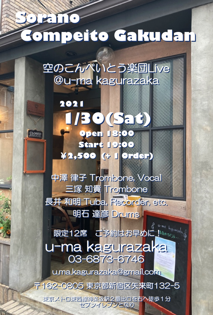 | Contact | u.ma.kagurazaka@gmail.com 予約:080-4120-7171 |