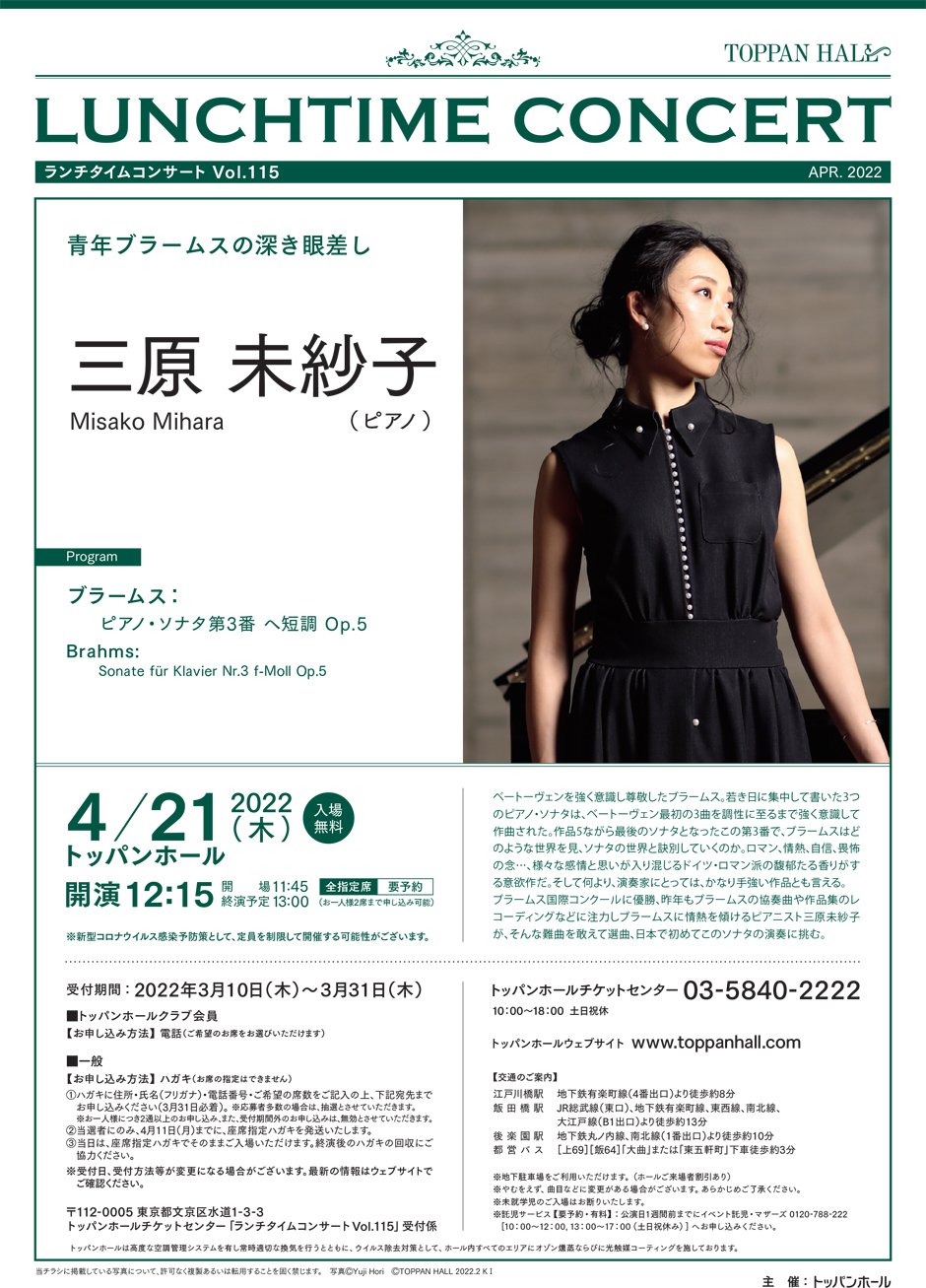 | Contact | トッパンホールチケットセンター 03-5840-2222(平日10:00~18:00) |
