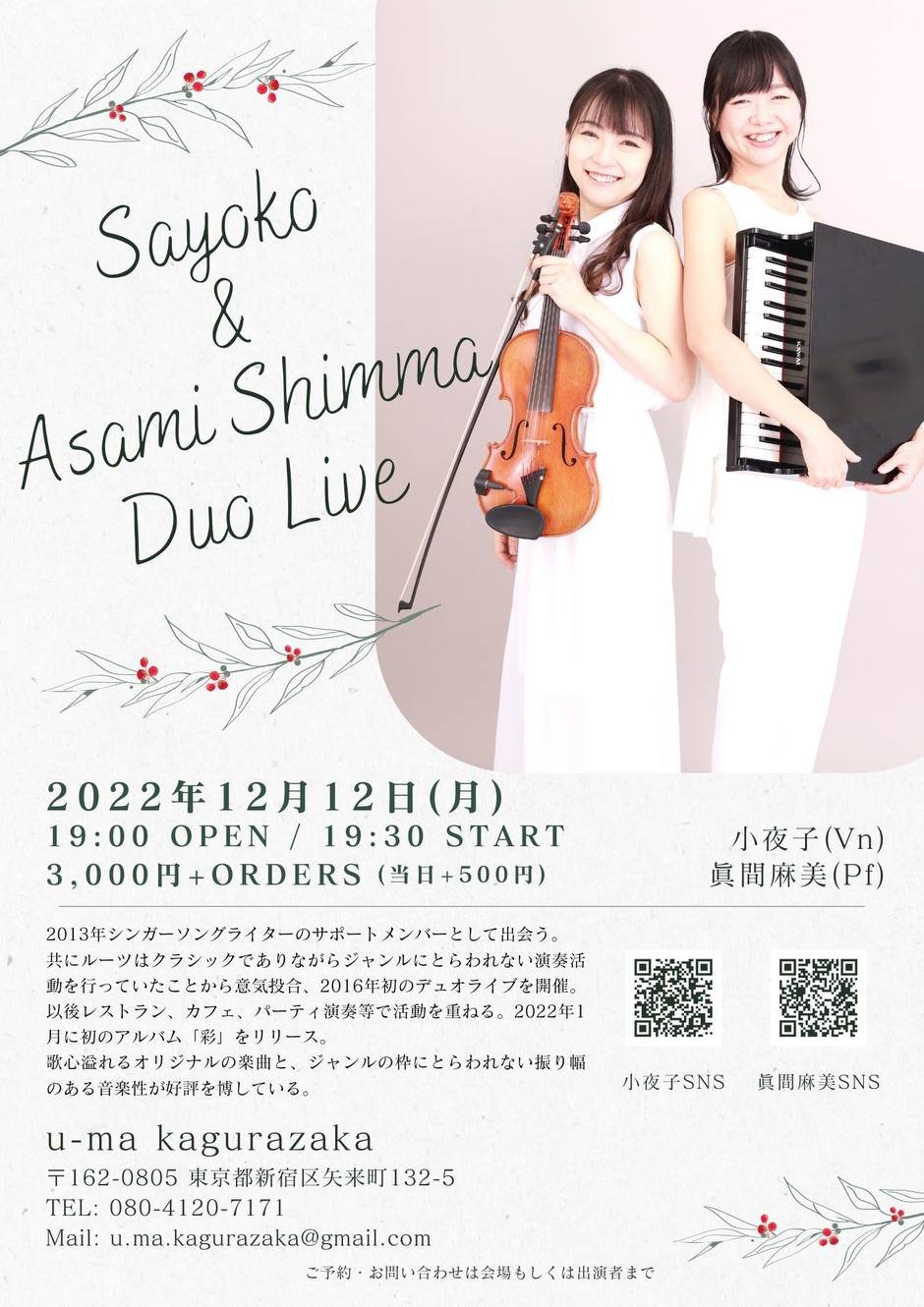 | Contact | Mail address: u.ma.kagurazaka@gmail.com Phone: 03-6873-6746 予約専用: 080-4120-7171 |