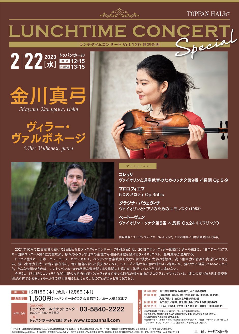 〈ランチタイムコンサート Vol.120〉特別企画/金川真弓(ヴァイオリン)【完売】