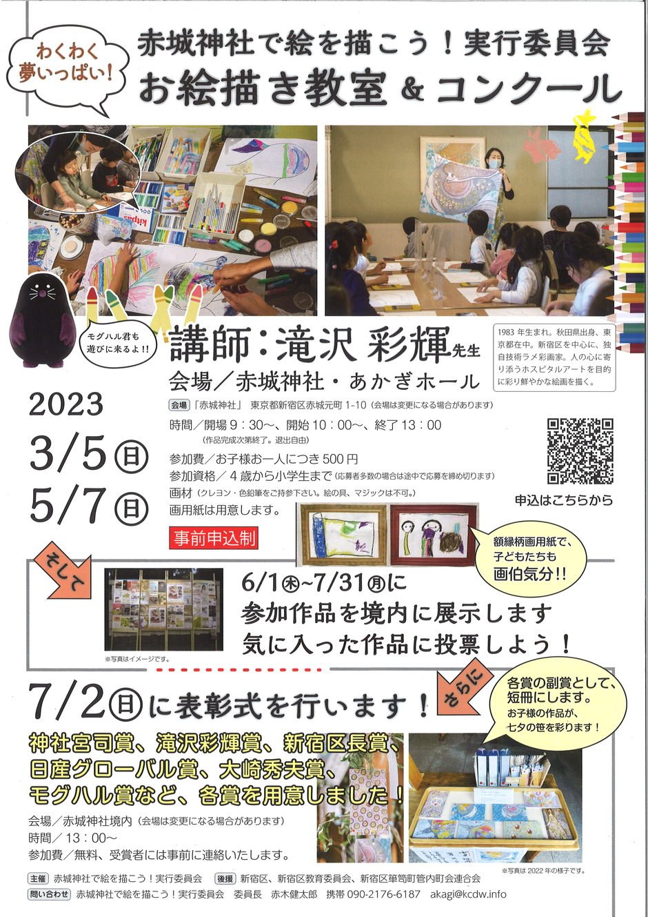 | Contact | 問い合わせ: 赤城神社で絵を描こう!実行委員会 委員長 赤木健太郎 (携帯090-2176-6187)(メール akagi@kcdw.info) |