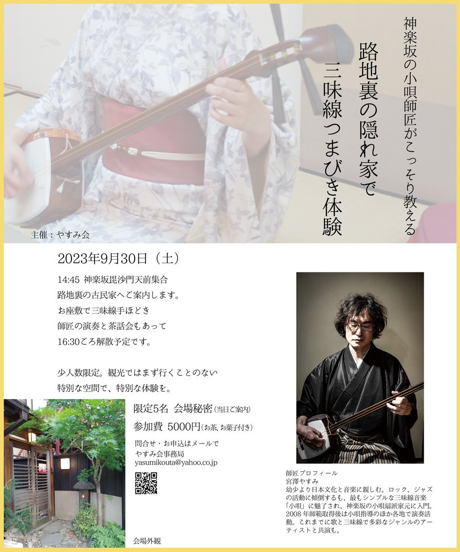 最もシンプルな三味線音楽「小唄」に魅了され、神楽坂で小唄を修業。
