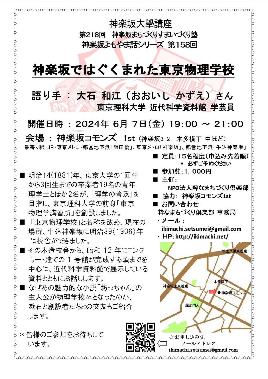 <満員御礼>第218回 神楽坂まちづくりすまいづくり塾(2024/6/7)