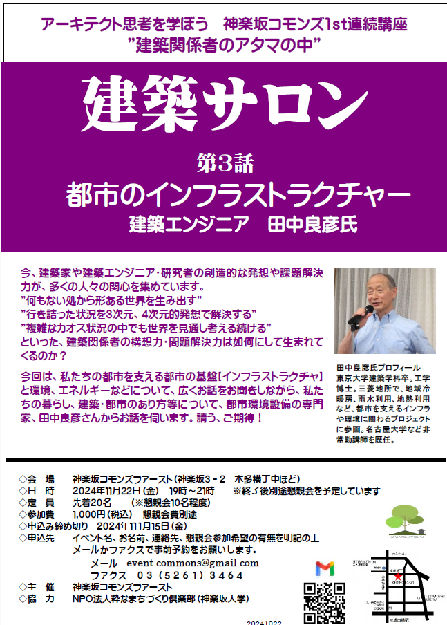 神楽坂コモンズ1st開催 建築サロン:アーキテクト思考を学ぼう 連続講座”建築家のアタマの中”第3回(2024/11/22)
