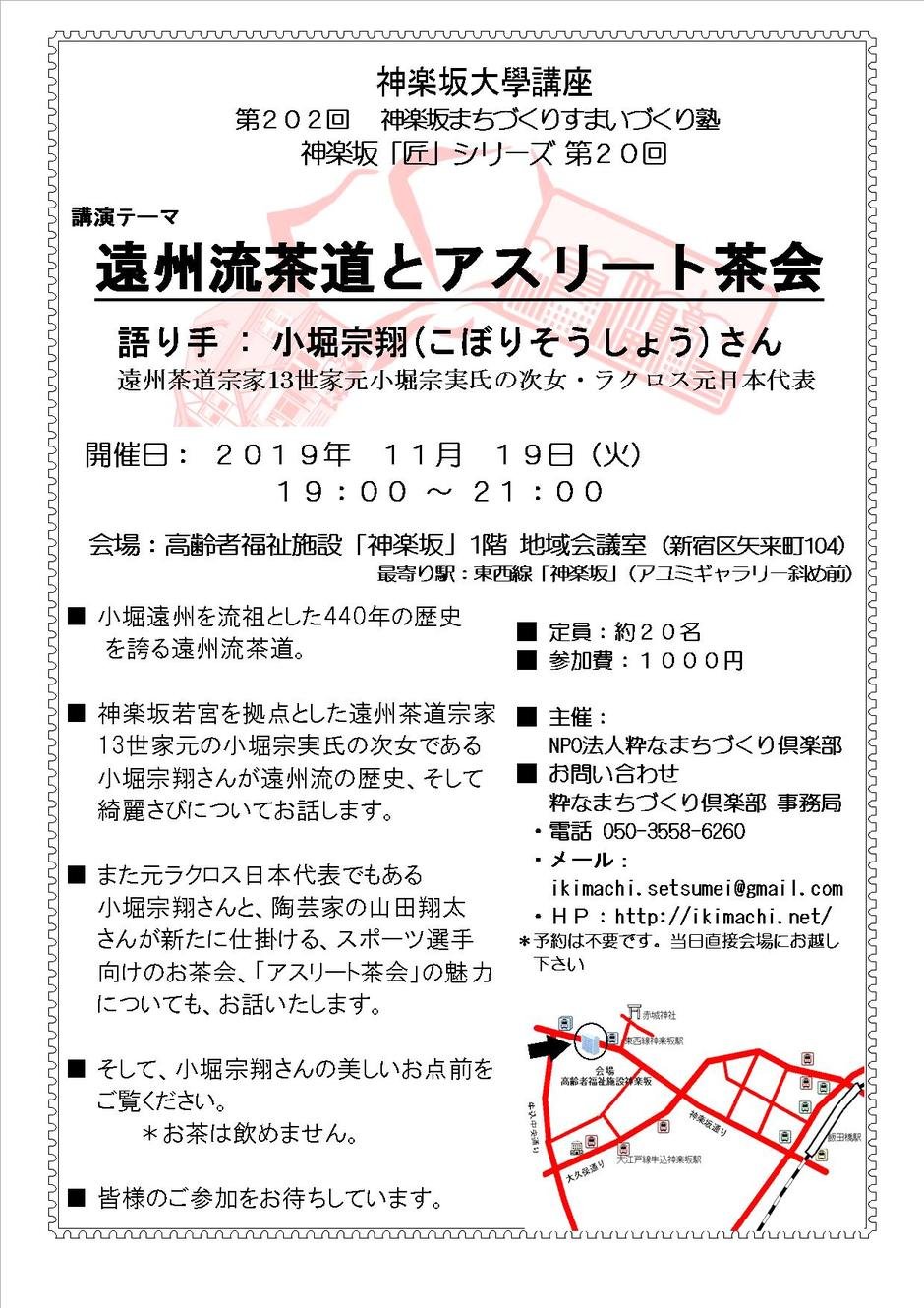 | Contact | NPO法人「粋なまちづくり倶楽部」塾事務局 ・電話 :050-3558-6260 ・メール:ikimachi.setsumei@gmail.com |