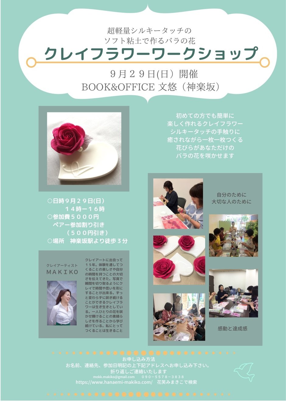 お申込みは、お名前、ご連絡先、9/29ワークショップと明記の上、
